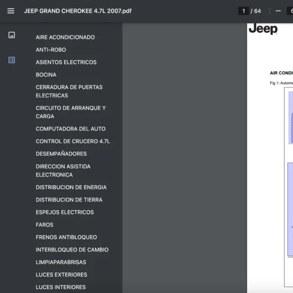 Si estas buscando un manual eléctrico de la marca Jeep modelo Grand Cherokee de 4.7L año 2007, este es el diagrama automotriz que necesitas.
