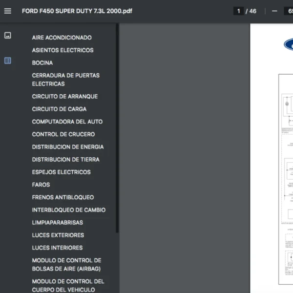 Si estas buscando un manual eléctrico de la marca Ford modelo F 450 de 7.3L año 2000, este es el diagrama automotriz que necesitas.