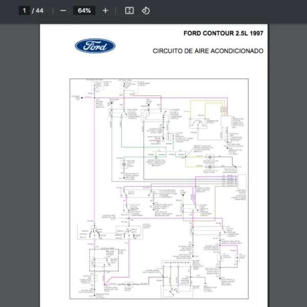Si estas buscando un manual eléctrico de la marca Ford modelo Contour de 2.5L año 1997, este es el diagrama automotriz que necesitas.