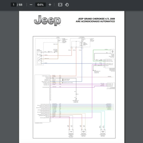 Si estas buscando un manual eléctrico de la marca Jeep modelo Grand Cherokee de 4.7L año 2009, este es el diagrama automotriz que necesitas.