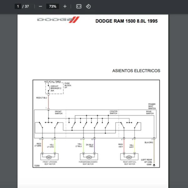 Si estas buscando un manual eléctrico de la marca Dodge modelo RAM 1500 de 8.0L año 1995, este es el diagrama automotriz que necesitas.