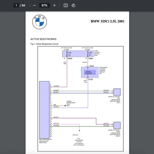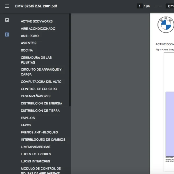 Si estas buscando un manual eléctrico de la marca BMW modelo 325Ci de 2.5L año 2001, este es el diagrama automotriz que necesitas.