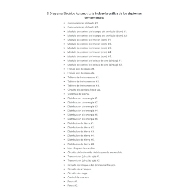 El Diagrama Eléctrico Automotriz te incluye la gráfica de los siguientes componentes: