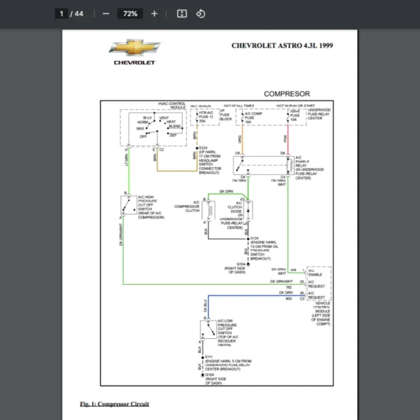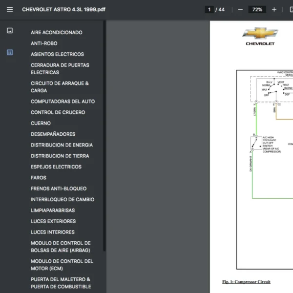 Conexiones. Sensores. Y otros componentes que intervienen en el funcionamiento correcto de los circuitos electrónicos (también llamados en inglés “wiring diagram”). Si estas buscando un manual eléctrico de la marca Chevrolet modelo Astro  de 4.3L año 1999 , este es el diagrama automotriz que necesitas.