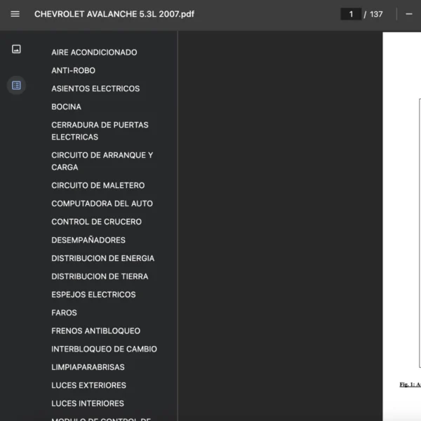 Si estas buscando un manual eléctrico de la marca Chevrolet modelo Avalanche de 5.3L año 2007, este es el diagrama automotriz que necesitas.