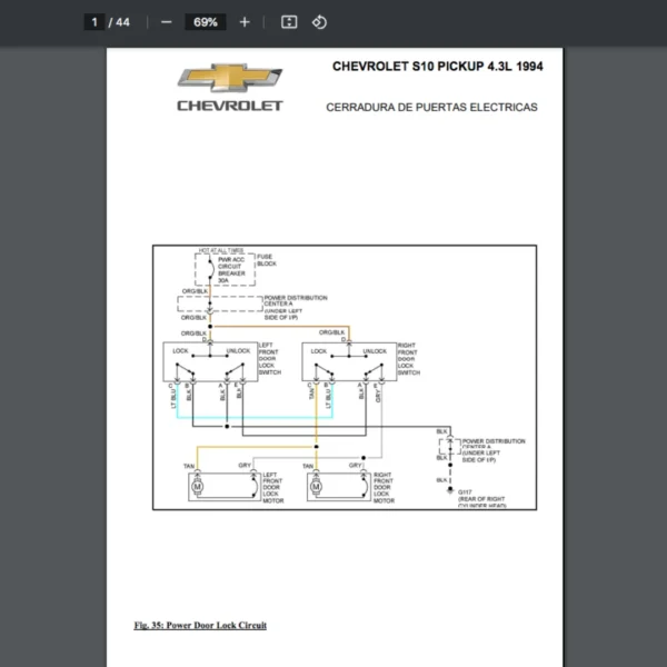 Conexiones. Sensores. Y otros componentes que intervienen en el funcionamiento correcto de los circuitos electrónicos (también llamados en inglés “wiring diagram”). Si estas buscando un manual eléctrico de la marca Chevrolet modelo S10 de 4.3L año 1994 , este es el diagrama automotriz que necesitas.