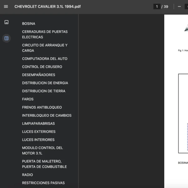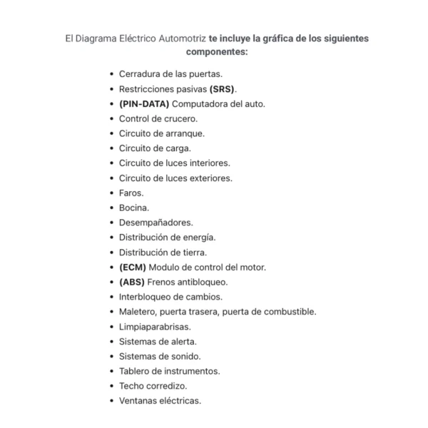 El Diagrama Eléctrico Automotriz te incluye la gráfica de los siguientes componentes: