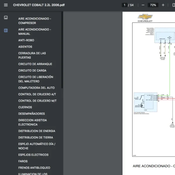 Si estas buscando un manual eléctrico de la marca Chevrolet modelo Cobalt de 2.2L año 2006, este es el diagrama automotriz que necesitas.