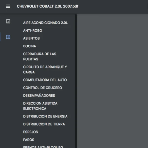 Si estas buscando un manual eléctrico de la marca Chevrolet modelo Cobalt de 2.0L año 2007, este es el diagrama automotriz que necesitas.