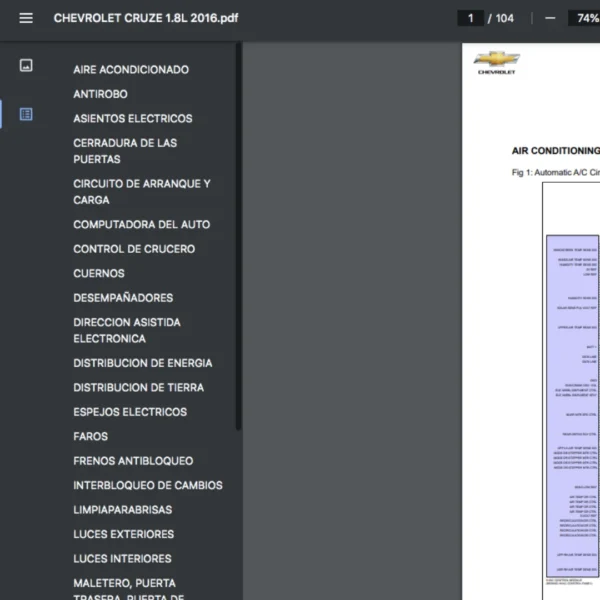 Si estas buscando un manual eléctrico de la marca Chevrolet modelo Cruze de 1.8L año 2016, este es el diagrama automotriz que necesitas.