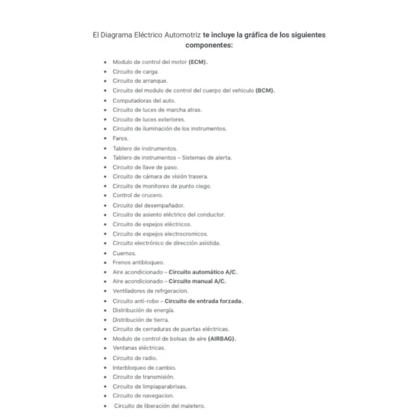 El Diagrama Eléctrico Automotriz te incluye la gráfica de los siguientes componentes: