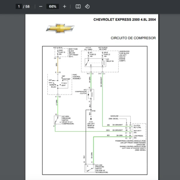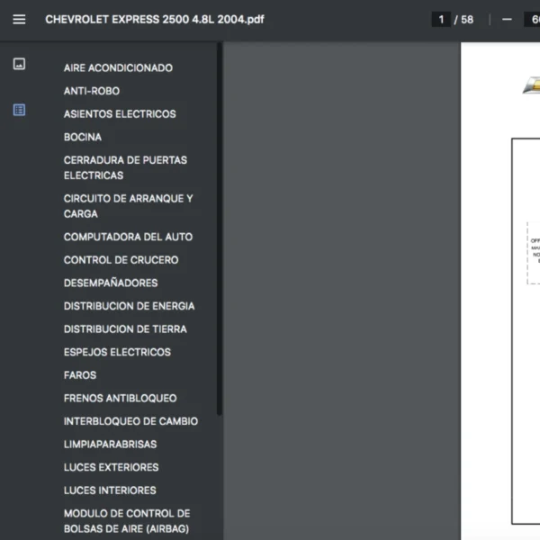 Si estas buscando un manual eléctrico de la marca Chevrolet modelo Express de 4.8L año 2004, este es el diagrama automotriz que necesitas.