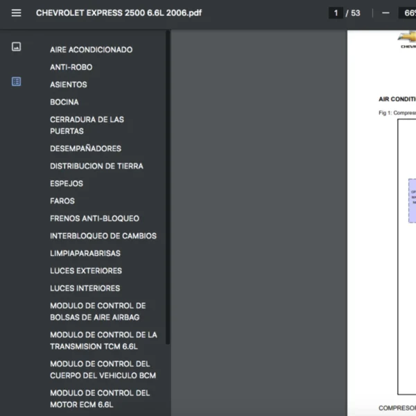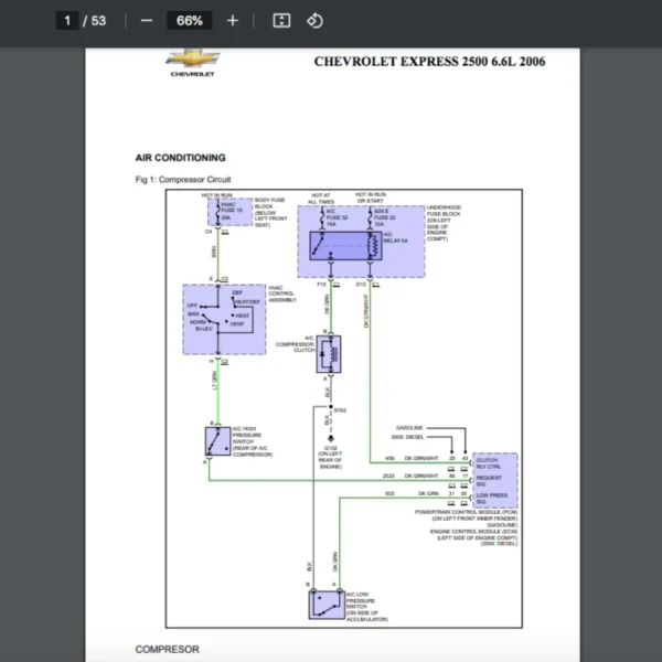 Si estas buscando un manual eléctrico de la marca Chevrolet modelo Express de 6.6L año 2006, este es el diagrama automotriz que necesitas.