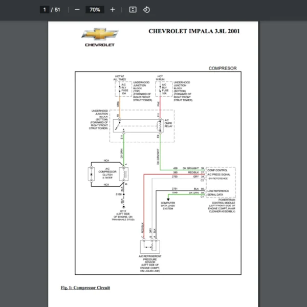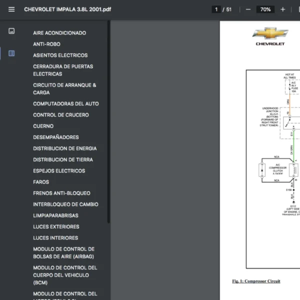 Si estas buscando un manual eléctrico de la marca Chevrolet modelo Impala de 3.8L año 2001, este es el diagrama automotriz que necesitas.
