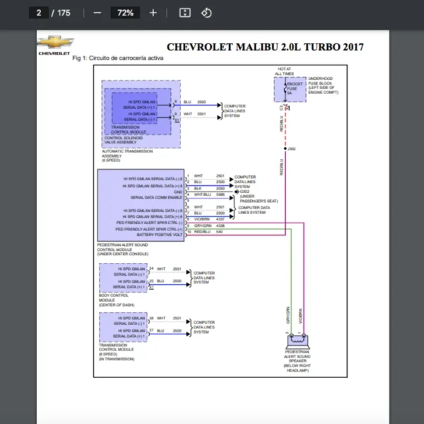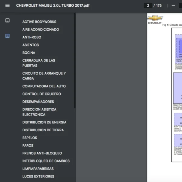 Si estas buscando un manual eléctrico de la marca Chevrolet modelo Malibu de 2.0L TURBO año 2017, este es el diagrama automotriz que necesitas.
