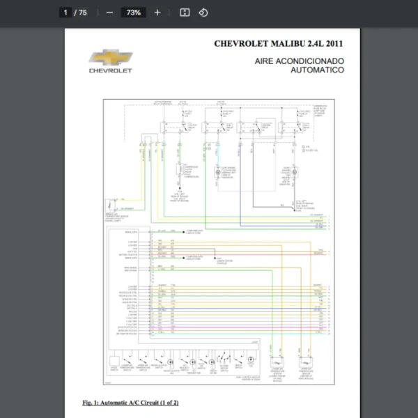 Si estas buscando un manual eléctrico de la marca Chevrolet modelo Malibu de 2.4L año 2011, este es el diagrama automotriz que necesitas.