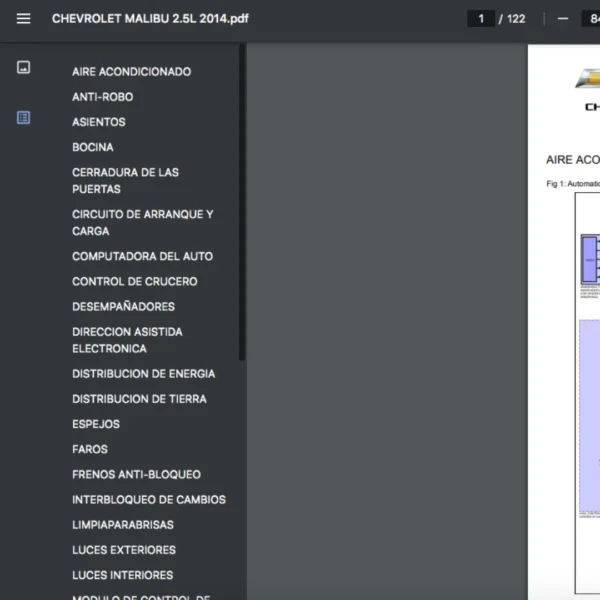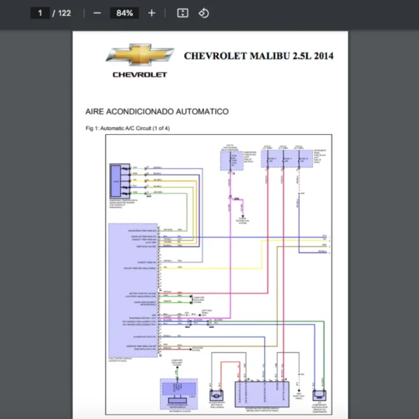 Si estas buscando un manual eléctrico de la marca Chevrolet modelo Malibu de 2.5L año 2014, este es el diagrama automotriz que necesitas.