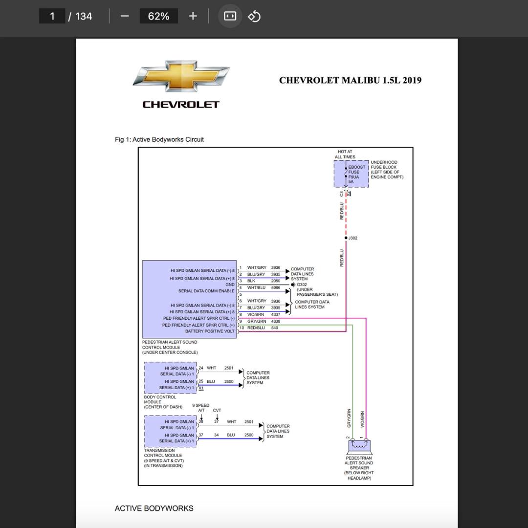 Si estas buscando un manual eléctrico de la marca Chevrolet modelo Malibu de 1.5L año 2019, este es el diagrama automotriz que necesitas.