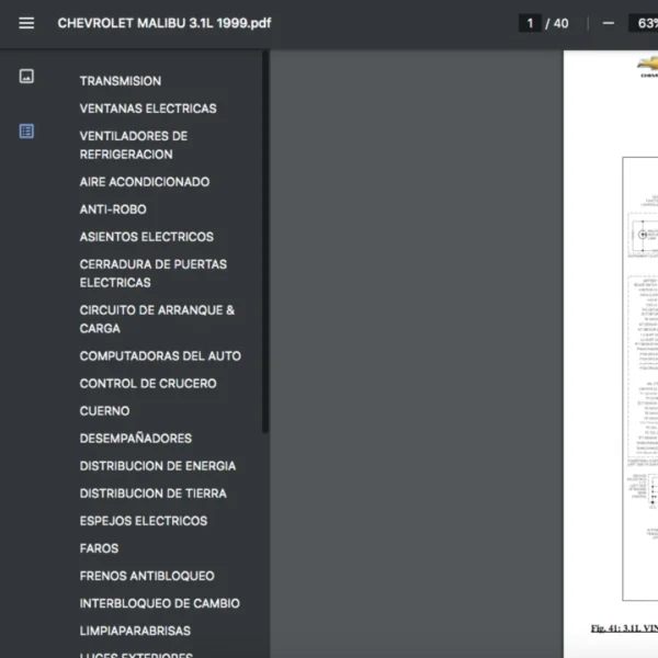 Si estas buscando un manual eléctrico de la marca Chevrolet modelo Malibu de 3.1L año 1999, este es el diagrama automotriz que necesitas.
