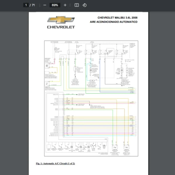 Si estas buscando un manual eléctrico de la marca Chevrolet modelo Malibu de 3.6L año 2008, este es el diagrama automotriz que necesitas.