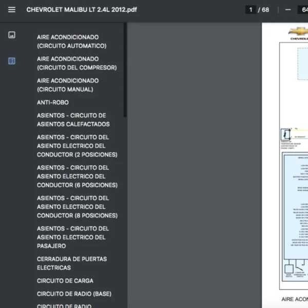Si estas buscando un manual eléctrico de la marca Chevrolet modelo Malibu de 2.4L año 2012, este es el diagrama automotriz que necesitas.