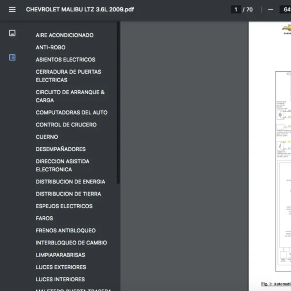 Si estas buscando un manual eléctrico de la marca Chevrolet modelo Malibu de 3.6L año 2009, este es el diagrama automotriz que necesitas.