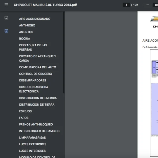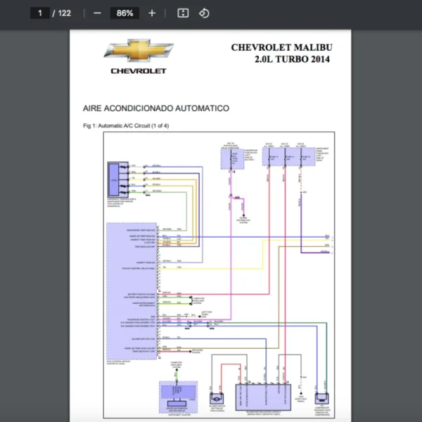 Si estas buscando un manual eléctrico de la marca Chevrolet modelo Malibu de 2.0L Turbo año 2014, este es el diagrama automotriz que necesitas.