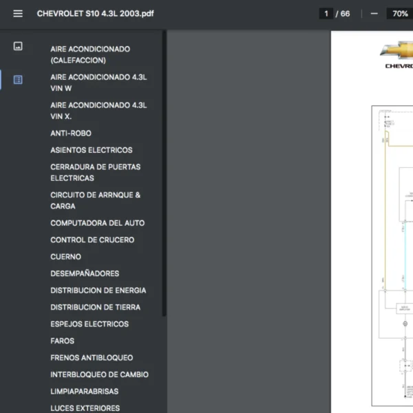 Si estas buscando un manual eléctrico de la marca Chevrolet modelo S10 de 4.3L año 2003, este es el diagrama automotriz que necesitas.