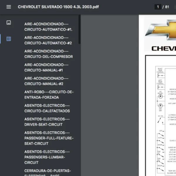 Si estas buscando un manual eléctrico de la marca Chevrolet modelo Silverado de 4.3L año 2003, este es el diagrama automotriz que necesitas.