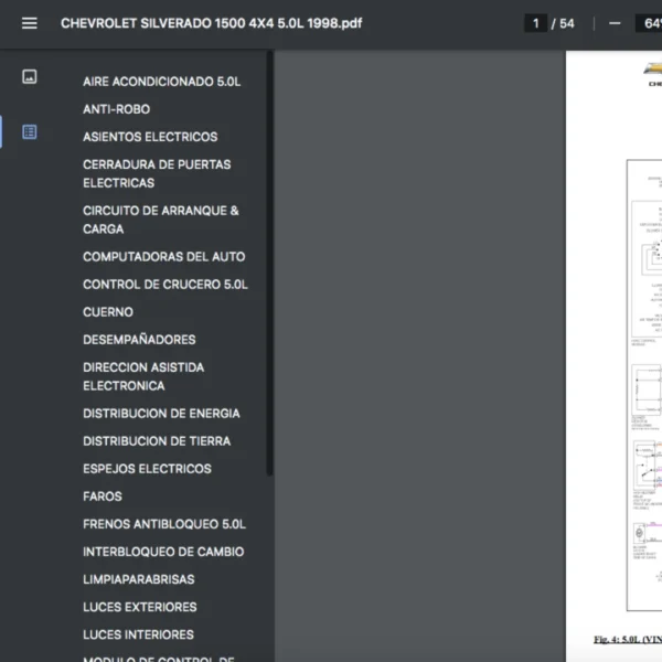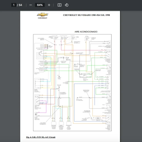 Si estas buscando un manual eléctrico de la marca Chevrolet modelo Silverado de 5.0L año 1998, este es el diagrama automotriz que necesitas.