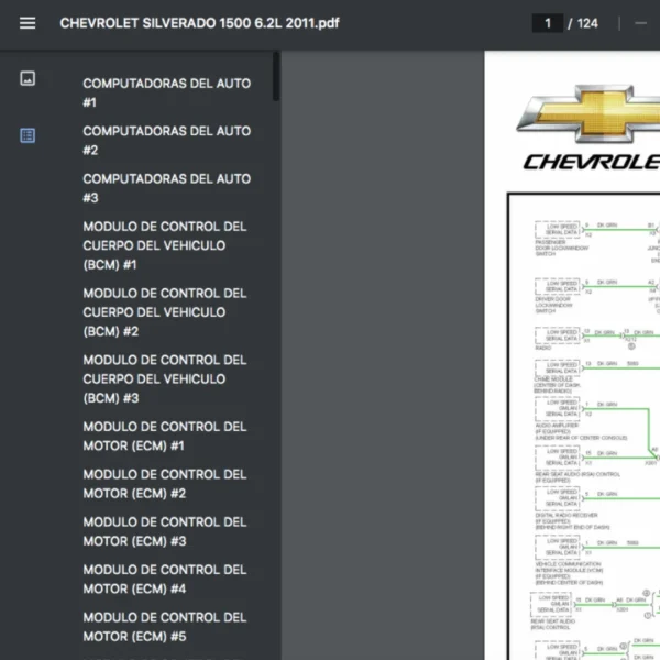 Si estas buscando un manual eléctrico de la marca Chevrolet modelo Silverado de 6.2L año 2011, este es el diagrama automotriz que necesitas.