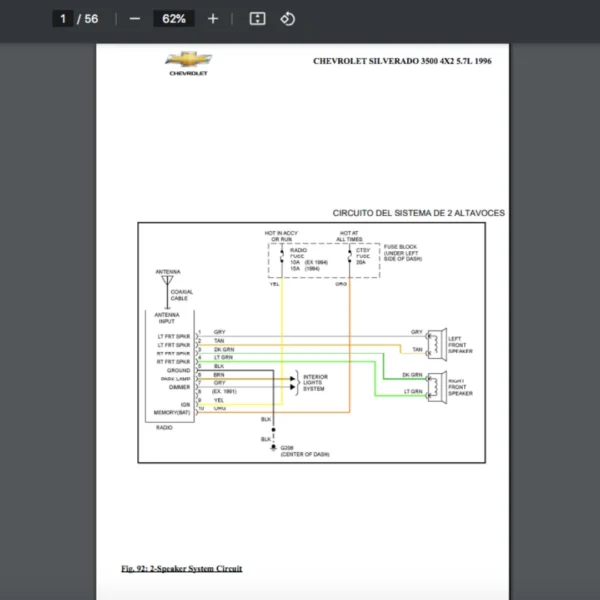 This item:  Diagrama Eléctrico CHEVROLET SILVERADO 3500 4X2 5.7L 1996
