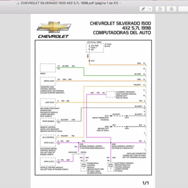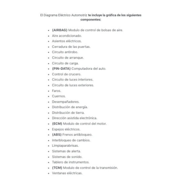 El Diagrama Eléctrico Automotriz te incluye la gráfica de los siguientes componentes: