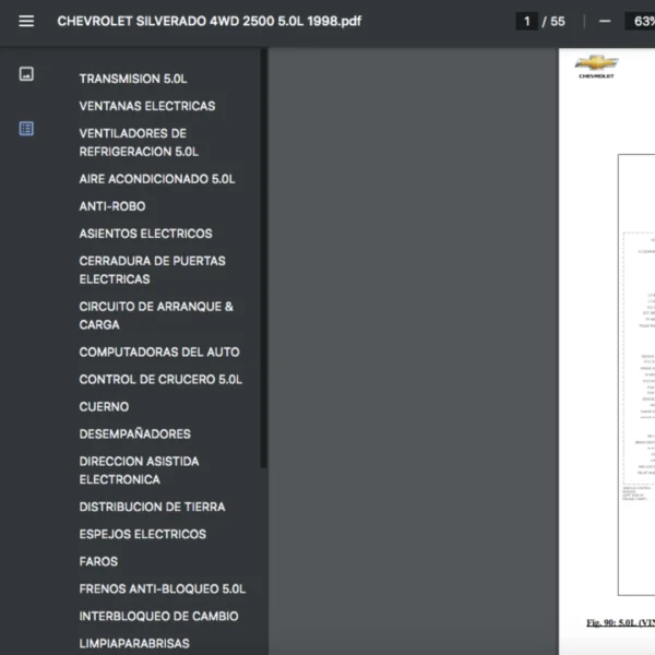 Si estas buscando un manual eléctrico de la marca Chevrolet modelo Silverado de 5.0L año 1998, este es el diagrama automotriz que necesitas.