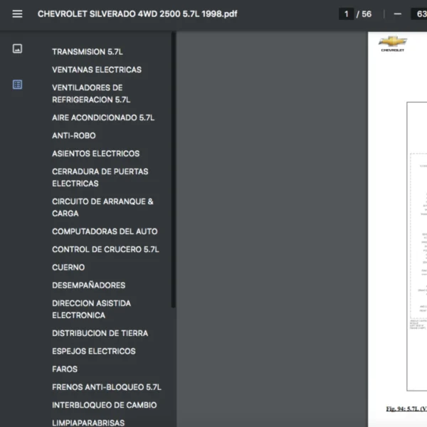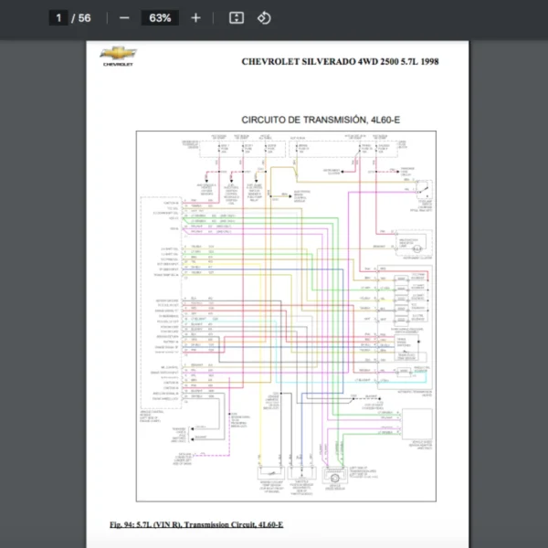 Si estas buscando un manual eléctrico de la marca Chevrolet modelo Silverado de 5.7L año 1998, este es el diagrama automotriz que necesitas.