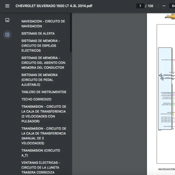 Si estas buscando un manual eléctrico de la marca Chevrolet modelo Silverado de 4.3L año 2014, este es el diagrama automotriz que necesitas.
