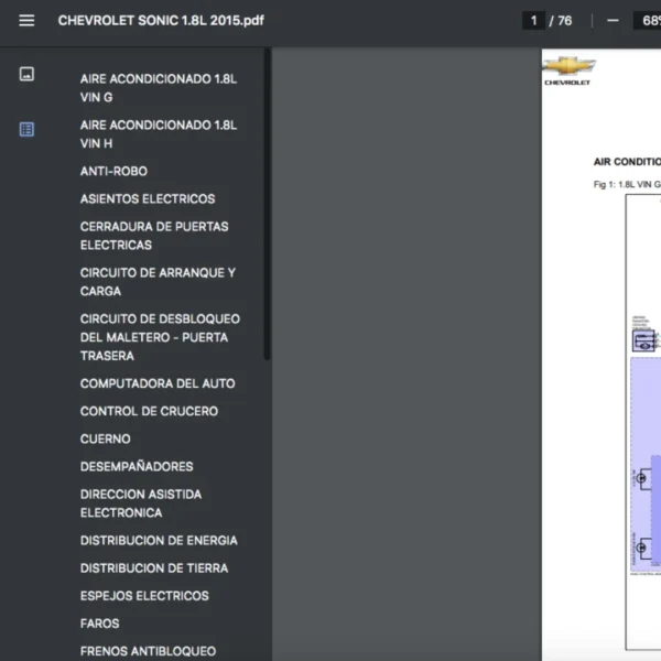 Si estas buscando un manual eléctrico de la marca Chevrolet modelo Sonic de 1.8L año 2015, este es el diagrama automotriz que necesitas.