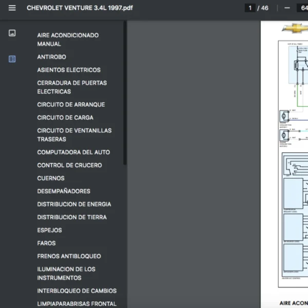 Si estas buscando un manual eléctrico de la marca Chevrolet modelo Venture de 3.4L año 1997, este es el diagrama automotriz que necesitas.