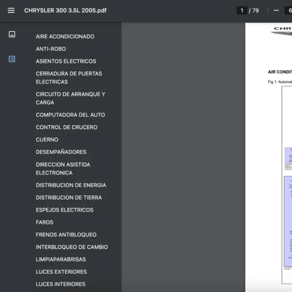 Si estas buscando un manual eléctrico de la marca Chrysler modelo 300 de 3.5L año 2005, este es el diagrama automotriz que necesitas.