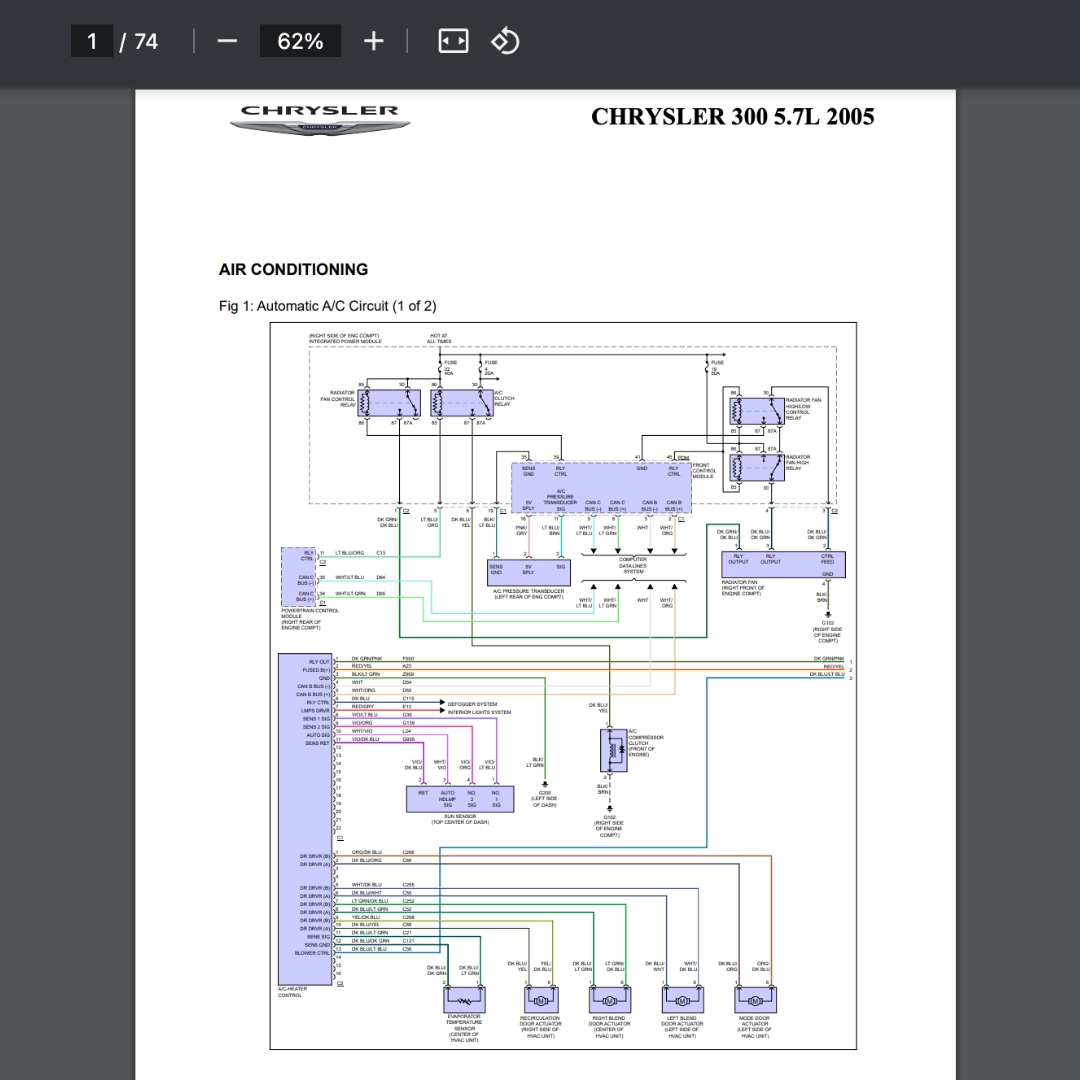 Si estas buscando un manual eléctrico de la marca Chrysler modelo 300 de 5.7L año 2005, este es el diagrama automotriz que necesitas.