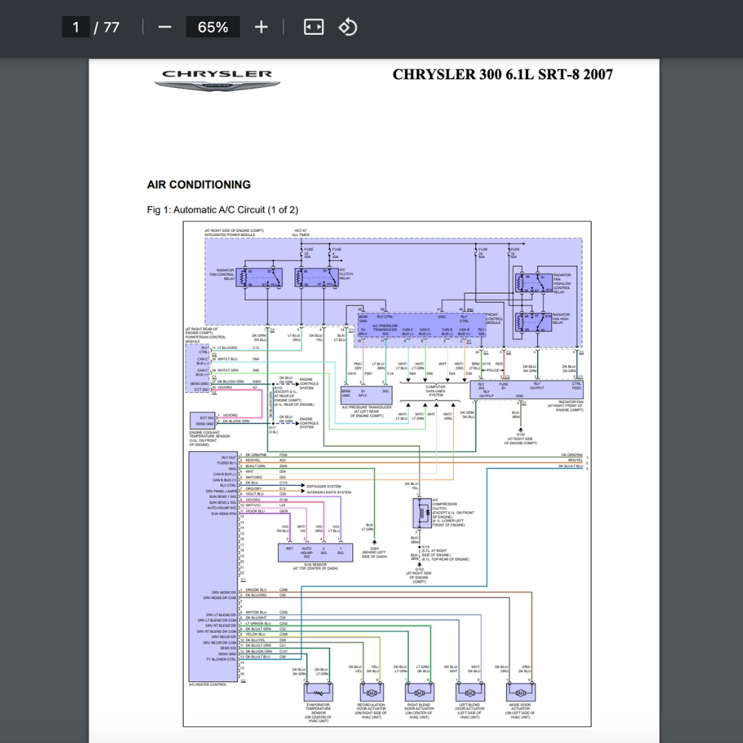 Si estas buscando un manual eléctrico de la marca Chrysler modelo 300 de 6.1L año 2007, este es el diagrama automotriz que necesitas.