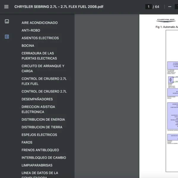Sé el primero en valorar “Diagrama Eléctrico CHRYSLER SEBRING 2.7L & 2.7L FLEX FUEL 2008”