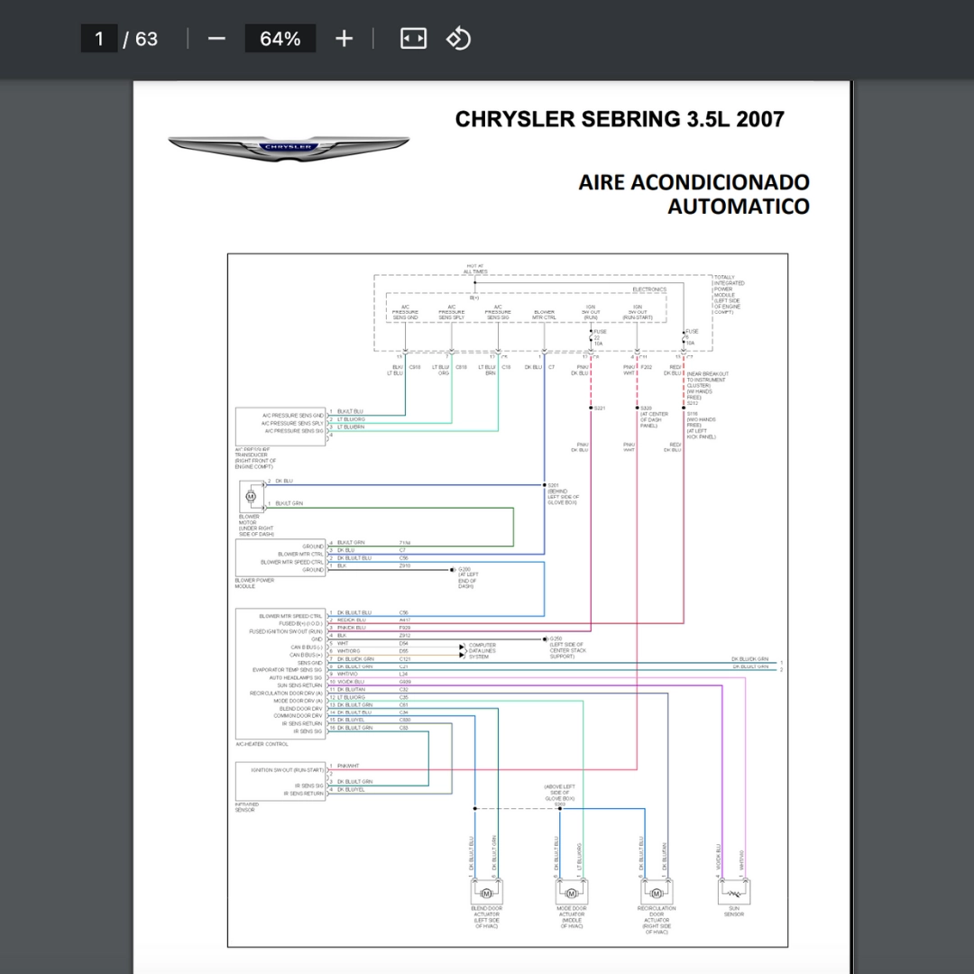 Si estas buscando un manual eléctrico de la marca Chrysler modelo Sebring de 3.5L año 2007, este es el diagrama automotriz que necesitas.