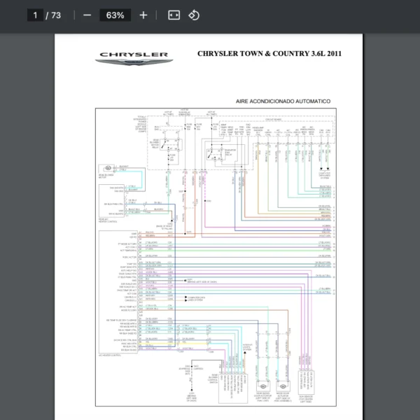 Si estas buscando un manual eléctrico de la marca Chrysler modelo Town & Country de 3.6L año 2011, este es el diagrama automotriz que necesitas.