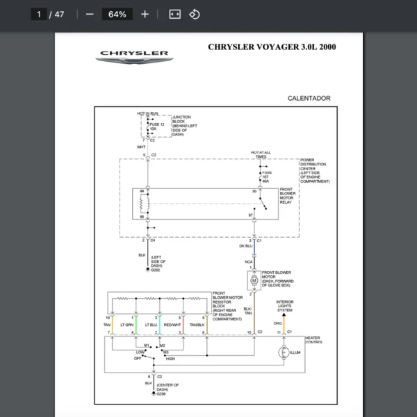 Si estas buscando un manual eléctrico de la marca CHRYSLER modelo VOYAGER de 3.0L año 2000, este es el diagrama automotriz que necesitas.