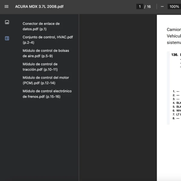 PDF legible en teléfono, tablet y PC; compatible solo con ACURA MDX 2008. Si requieres otra variante/modelo, contáctanos.