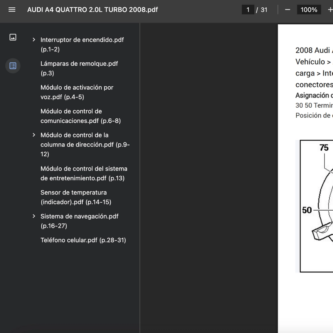 PDF visible en teléfono, tablet y PC; compatible solo con AUDI A4 QUATTRO 2008. Si requieres otra variante/modelo, contáctanos.