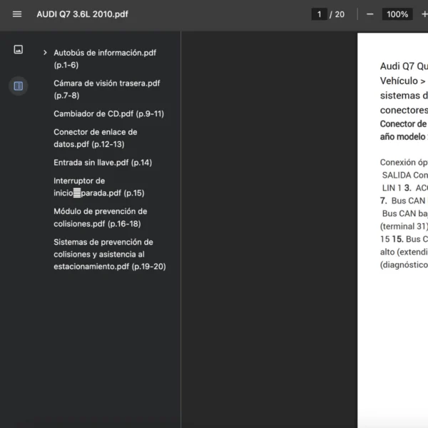 PDF visible en teléfono, tablet o PC; lectura clara y lista para taller. Compatible solo con AUDI Q7 2010. Si requieres otra variante/modelo, contáctanos.