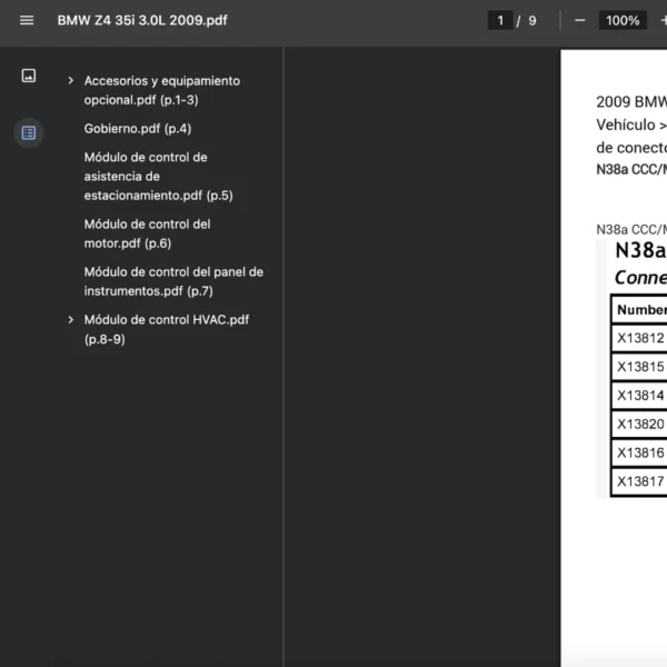 PDF visible en teléfono, tablet o PC; lectura clara para campo. Compatible solo con BMW Z4 2009. Si requieres otra variante/modelo, contáctanos.