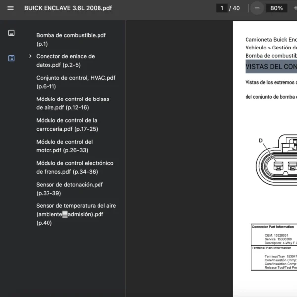 PDF visible en teléfono, tablet o PC; compatible solo con BUICK ENCLAVE 2008. Si requieres otra variante/modelo, contáctanos.
